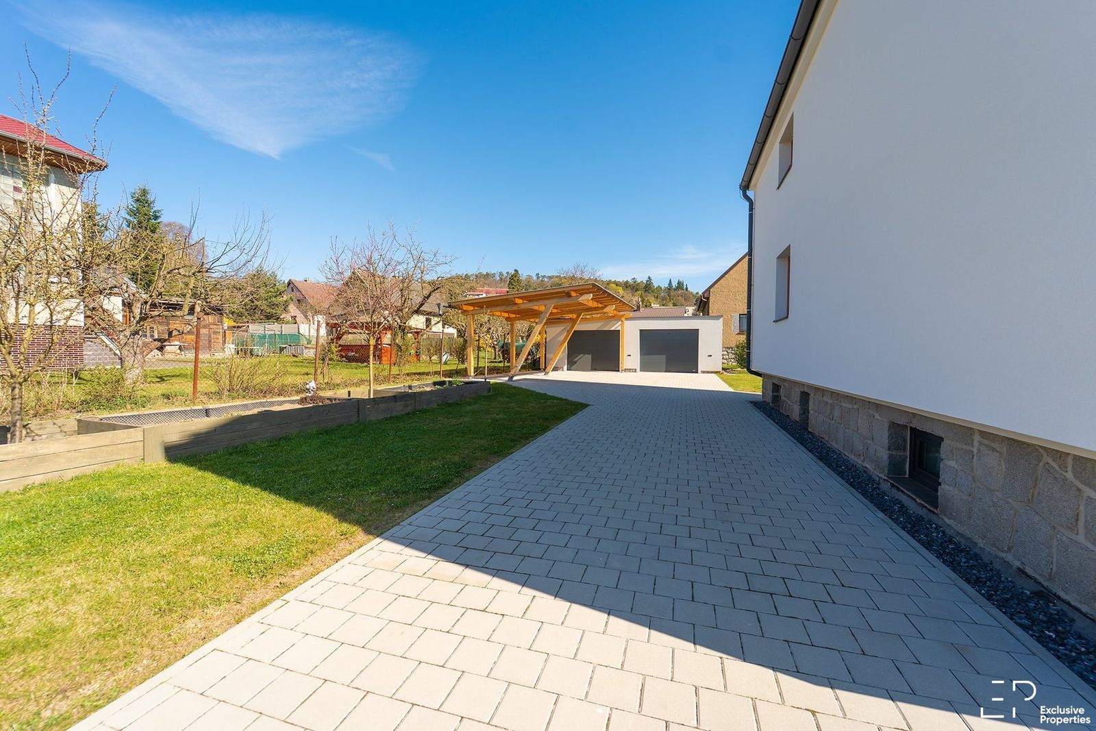 Celková výměra pozemku činí 962 m², z toho zastavěná plocha domu je 121 m². Součástí je také dvougaráž o velikosti 54 m², zastřešené parkovací stání pro dvě vozidla a udržovaná zahrada o výměře 743 m². Na pozemku se navíc nachází volná stavební parcela o velikosti 44 m², která nabízí další potenciál pro rozšíření.