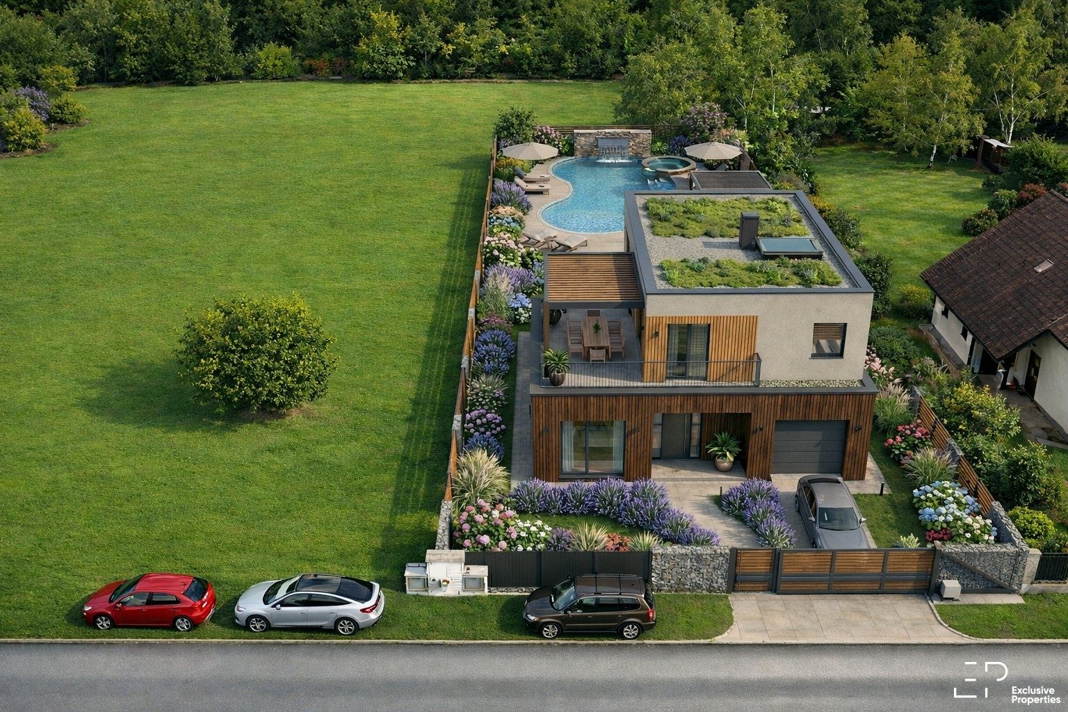 Pozemek má ideální velikost 1 200 m² pro rodinný dům i zahradu. Kompletní sítě na hranici pozemku znamenají výraznou úsporu času i nákladů. Asfaltová cesta až k pozemku zajišťuje pohodlný příjezd, umístění na okraji obce a výhled do zeleně přináší klid a soukromí. A zároveň máte Prahu opravdu na dosah.