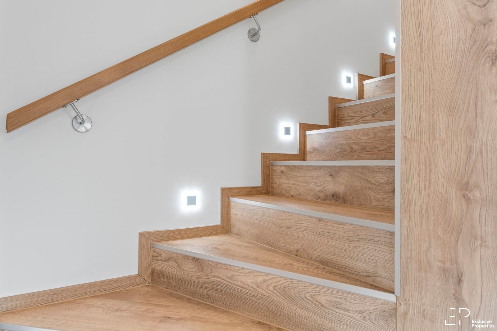 V patře jsou umístěny tři ložnice, z toho hlavní ložnice má vlastní koupelnu se sprchou. K dispozici je také druhá koupelna s vanou, WC, 2 umyvadla. Celkem tedy 3 koupelny.