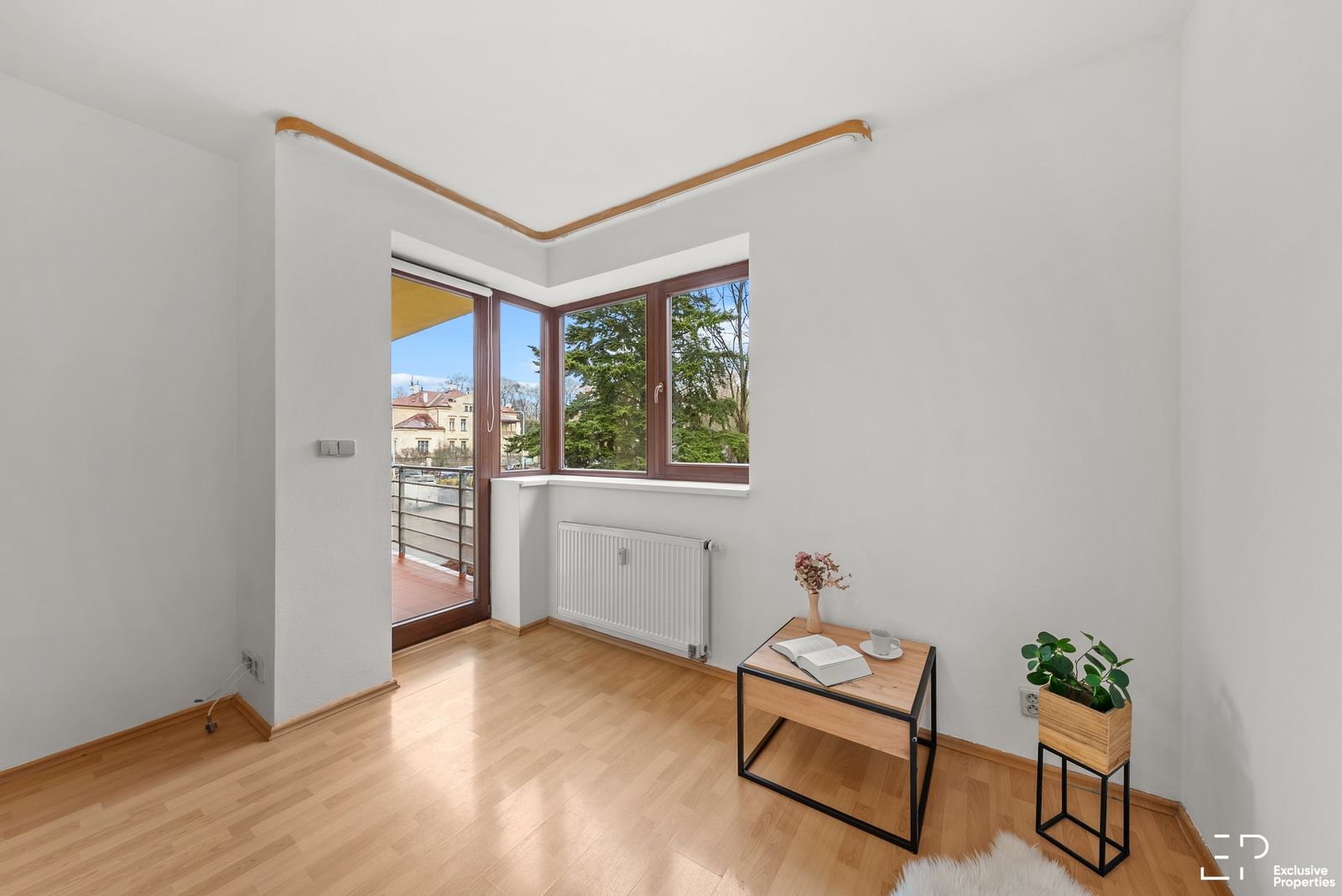 Balkon přístupný z obou pokojům pokoje neprůchozí. Částečné stínění interiérovými žaluziemi.