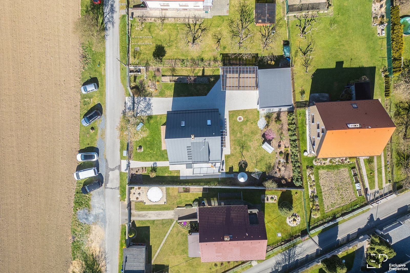 Celková výměra pozemku činí 962 m², z toho zastavěná plocha domu je 121 m². Součástí je také dvougaráž o velikosti 54 m², zastřešené parkovací stání pro dvě vozidla a udržovaná zahrada o výměře 743 m². Na pozemku se navíc nachází volná stavební parcela o velikosti 44 m², která nabízí další potenciál pro rozšíření.